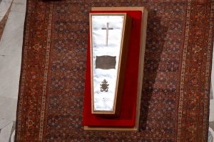 El momento más simbólico ocurrió cuando se cubrió el rostro del cuerpo del Papa con un velo blanco. Acto seguido, el ataúd fue cerrado, decorado con el escudo papal, una cruz y una placa que señala su nombre, los años de vida y la duración de su ministerio.