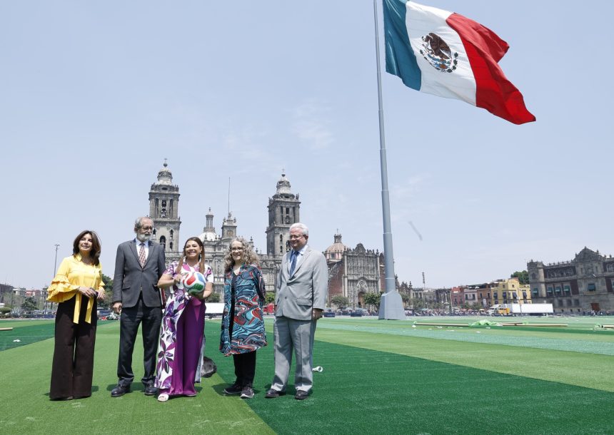Para anticipar el ambiente futbolero, la jefa de Gobierno Clara Brugada participó en una “cascarita” improvisada sobre la plancha del Zócalo mientras supervisaba la instalación de pasto sintético que transformará el emblemático espacio público en un campo deportivo temporal.