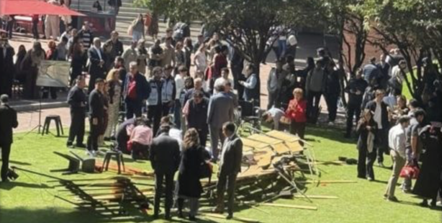 El incidente ocurrió en el campus ubicado en Santa Fe, dentro de la alcaldía Álvaro Obregón. Cerca de un centenar de estudiantes se encontraba reunido sobre un templete provisional cuando la parte trasera de las gradas colapsó repentinamente, provocando la caída de varios de los presentes.