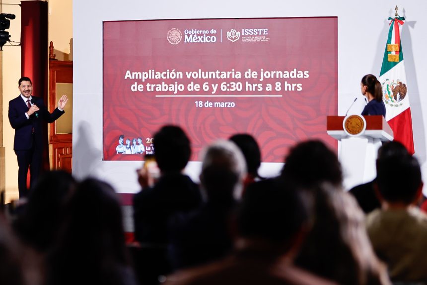 Durante la conferencia matutina de este 18 de marzo de 2025, Martí Batres, director general del ISSSTE, anunció que los trabajadores de la salud podrán ampliar su jornada de manera voluntaria, pasando de 6-6.5 horas a 8 horas laborales. Esta medida impactará a 33,107 empleados, entre médicos, dentistas, enfermeras, técnicos radiólogos y laboratoristas.
