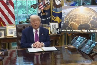 Con un gesto desafiante y una promesa colosal, el presidente Donald Trump anunció la creación de la “Cúpula Dorada”,…