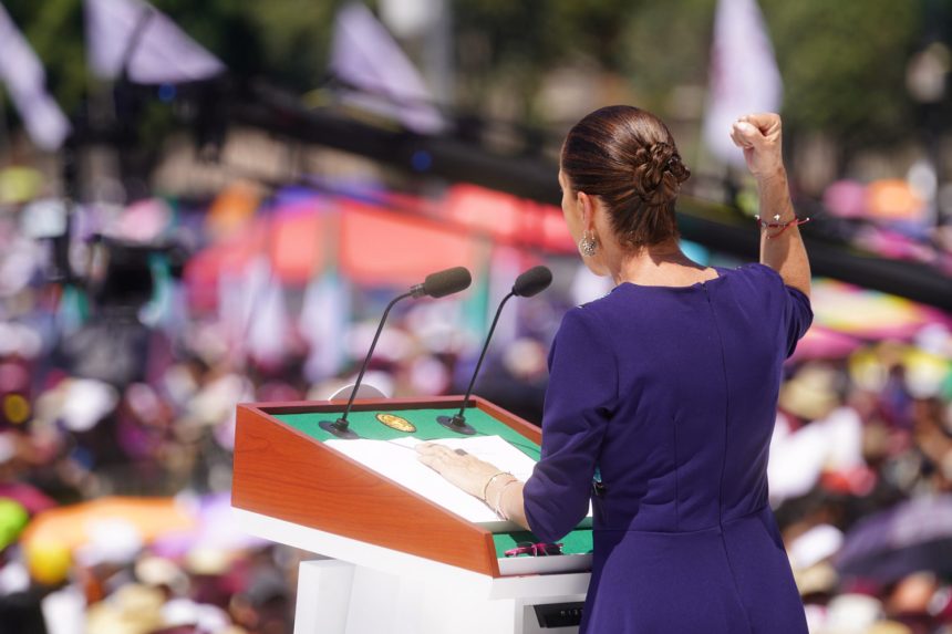 En un Zócalo abarrotado, la presidenta Claudia Sheinbaum lanzó un llamado al gobierno de Estados Unidos para que refuerce el control sobre el tráfico de armas de alto poder hacia México y atienda de raíz el problema del consumo de fentanilo entre su juventud.